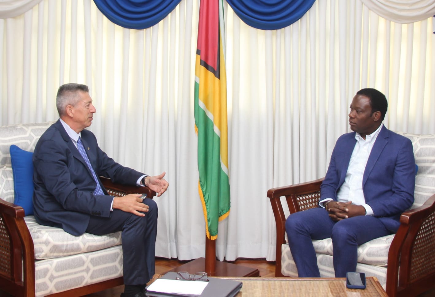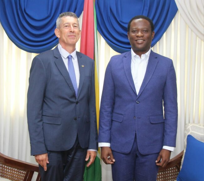 During the meeting, the Ambassador announced the decision of the French Government to advance its diplomatic presence in Guyana through the establishment of a French Office in Georgetown by September 2023. While the Office is not an Embassy it will have a full-fledged diplomatic representative to aid in the furtherance of mutually beneficial cooperation and bilateral relations between Guyana and France.