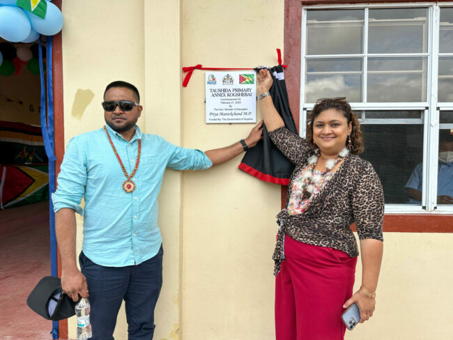 The Honourable Minister of Education, Priya Manickchand along with Minister of Local Government and Regional Development, Nigel Dharamlall officially commissioned the Kokshebai Nursery School on Tuesday during a visit to the Upper Takutu- Upper Essequibo region.